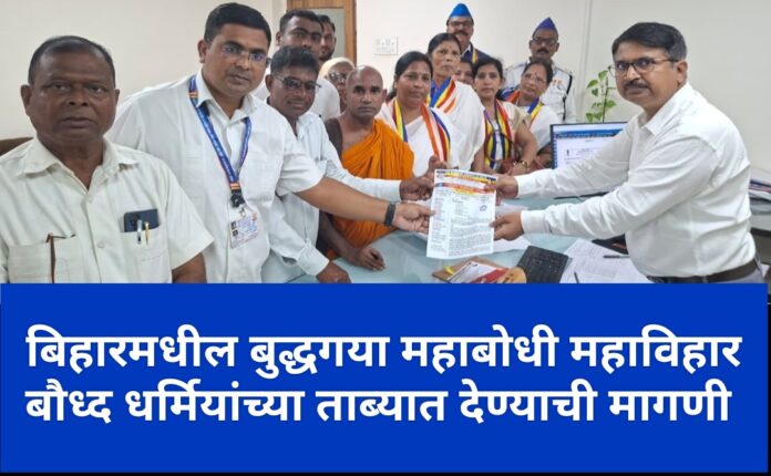 बिहार येथील महाबोधी महाविहार बौध्द धर्मियांच्या ताब्यात देण्याच्या मागणीसाठी बुधवारी ( दि.१७ ) नाशिक रोड येथील डॉ. बाबासाहेब आंबेडकर पुतळ्यापासून जनआक्रोश मोर्चा काढण्यात आला. भारतीय बौद्ध महासभेतर्फे विभागीय महसूल आयुक्तांना निवेदन देण्यात आले.