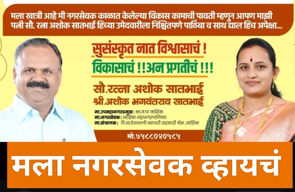 माझे पती अशोक सातभाई १९८७ पासून सार्वजनिक जीवनात काम करीत आहे. सन २०१२ मध्ये ते प्रभाग १८ मधून नगरसेवक म्हणून निवडून आलेले आहे. त्यांच्या कार्यकाळात त्यांनी प्रभागातील विविध समस्या मार्गी लावलेल्या आहेत. विकासकामे आणि मूलभूत सुविधा उपलब्ध करून देण्यास प्राधान्य दिले. त्यांच्या पावलावर पाय ठेऊन मी काम करणार आहे. त्यासाठी मतदारांनी मला प्रभाग १८ मधून निवडून देऊन काम करण्याची संधी द्यावी. अशी अपेक्षा रत्ना अशोक सातभाई यांनी नाशिक बातमीदार न्यूज चॅनेल सोबत बोलतांना व्यक्त केली.