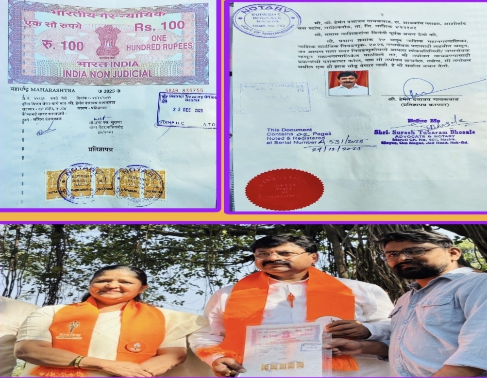 नगरसेवक म्हणून निवडून दिले तर तपोवनातील एकही वृक्ष तोडू देणार नाही ! ; उबाठाचे इच्छुक उमेदवार हेमंत गायकवाड यांचे शंभर रुपयांच्या स्टॅम्प पेपरवर वचनपत्र