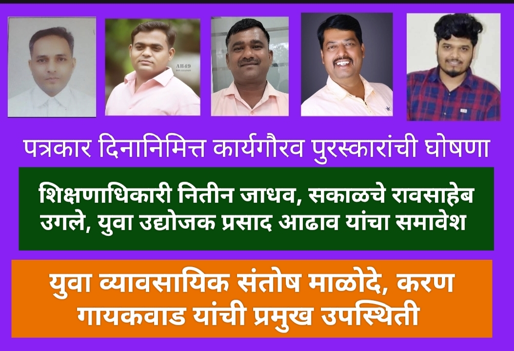 नाशिक मराठी पत्रकार संघाच्या कार्यगौरव पुरस्कारांची घोषणा ; पत्रकार दिनानिमित्त ६ जानेवारीला वितरण सोहळा