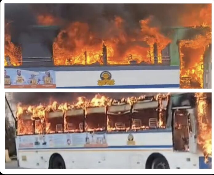 याबाबत सविस्तर वृत्त असे की, एसटी बस सोलापूरहून नाशिक कडे पुढील मार्गावर प्रवास करत असताना शिंदे टोलनाक्यावरच्या अचानक बसच्या इंजिनच्या पुढील भागातून धूर निघू लागला. परिस्थिती लक्षात येताच चालकाने तत्काळ बस रस्त्याच्या कडेला थांबवून सर्व प्रवाशांना खाली उतरवले. काही क्षणांतच बसने मोठा पेट घेतल्याने आगीने भीषण रुद्ररूप धारण केले होते. नाशिक पुणा महामार्गावरील शिंदे पळसे भागातील महामंडळाची बस पेटल्याची ही दुसरी घटना आहे. मागील दोन तीन वर्षापूर्वी देखील अशाच प्रकारे एसटी महामंडळाच्या बसच्या इंजिन मधे अचानक आग लागली होती. या कालच्या घटनेने पळसे जवळील घटनेसह मिर्ची हाँटेल नाशिक मधील बस पेटल्याच्या आठवणी ताज्या झाल्या आहेत.राज्य परिवहन महामंडळाने ज्या नादुरुस्त अथवा खराब बस आहेत. त्या व्यवस्थित दुरुस्त करुनच रस्त्यावर प्रवासी वाहतूकीसाठी सोडायला हव्या आहेत. आज अधिक वातावरणात उष्णता असल्याने कधाचीत बसच्या इंजिन मधे शाँर्ट सर्किट झाल्याने आग लागली असल्याचे बोलले जात आहे.