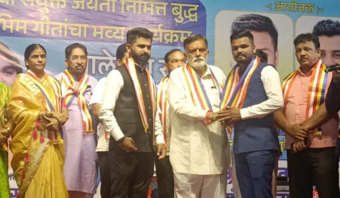 जेलरोड येथील सिद्धार्थ मित्र मंडळ व मनवा महिला मंडळातर्फे मंगळवारी ( दि.२२ ) दसक राजवाडा येथे सायंकाळी गौतम बुद्ध पौर्णिमा निमित्ताने युवा गीतकार चेतन लोखंडे यांच्या बुद्ध व भिम गीतांच्या कार्यक्रमाचे आयोजन करण्यात आले होते. त्यावेळी प्रमुख पाहुणे म्हणून राजाभाऊ वाजे बोलत होते. रोहन गांगुर्डे आणि तेजस गांगुर्डे यांनी कार्यक्रमाचे आयोजन केले होते.